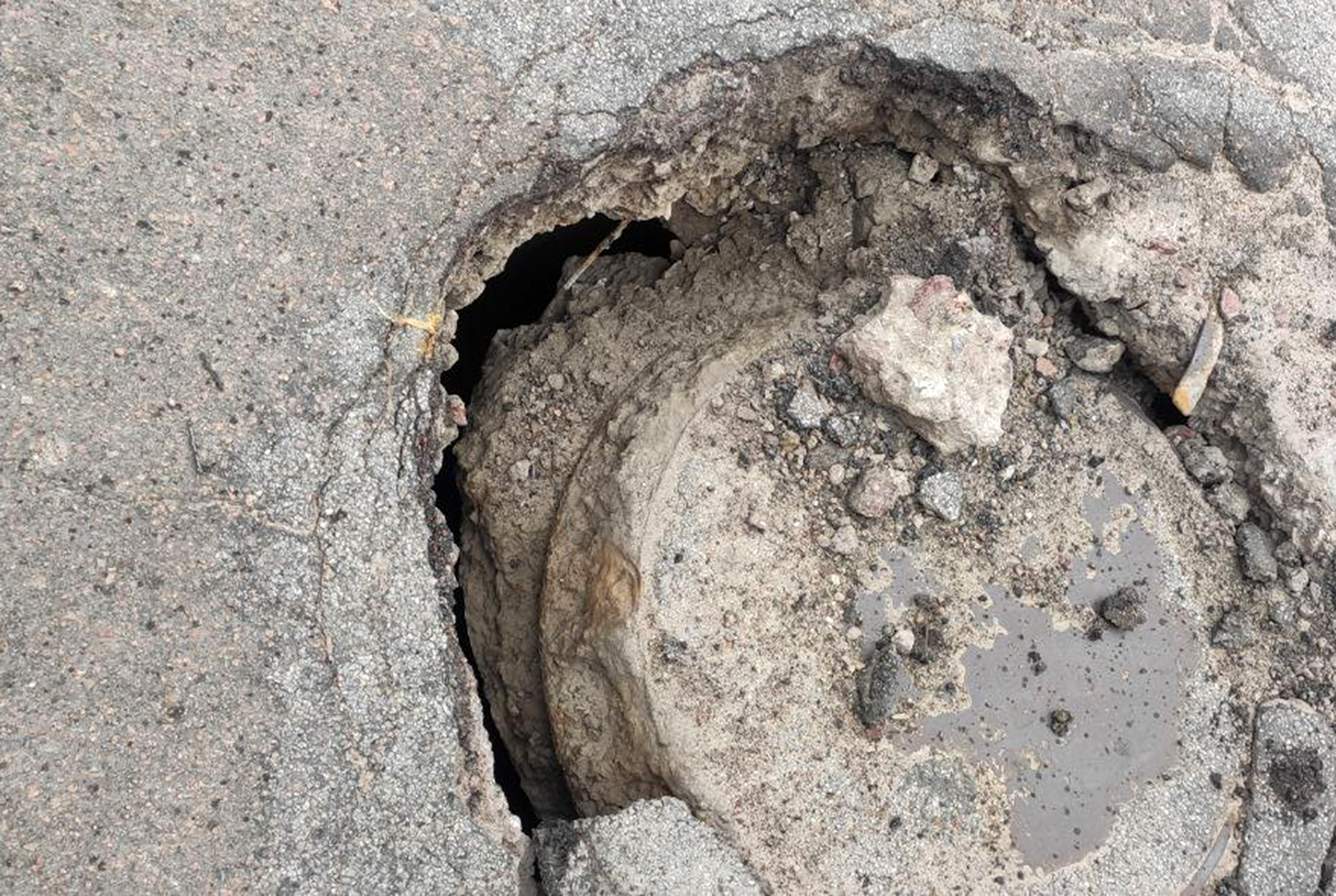Під час огляду з’ясувалося, що кришка люку впала всередину колодязя, ймовірно після наїзду вантажного транспорту. Проте головна причина — незадовільний технічний стан: тріснута плита перекриття та пошкоджена обойма люку колодязя.