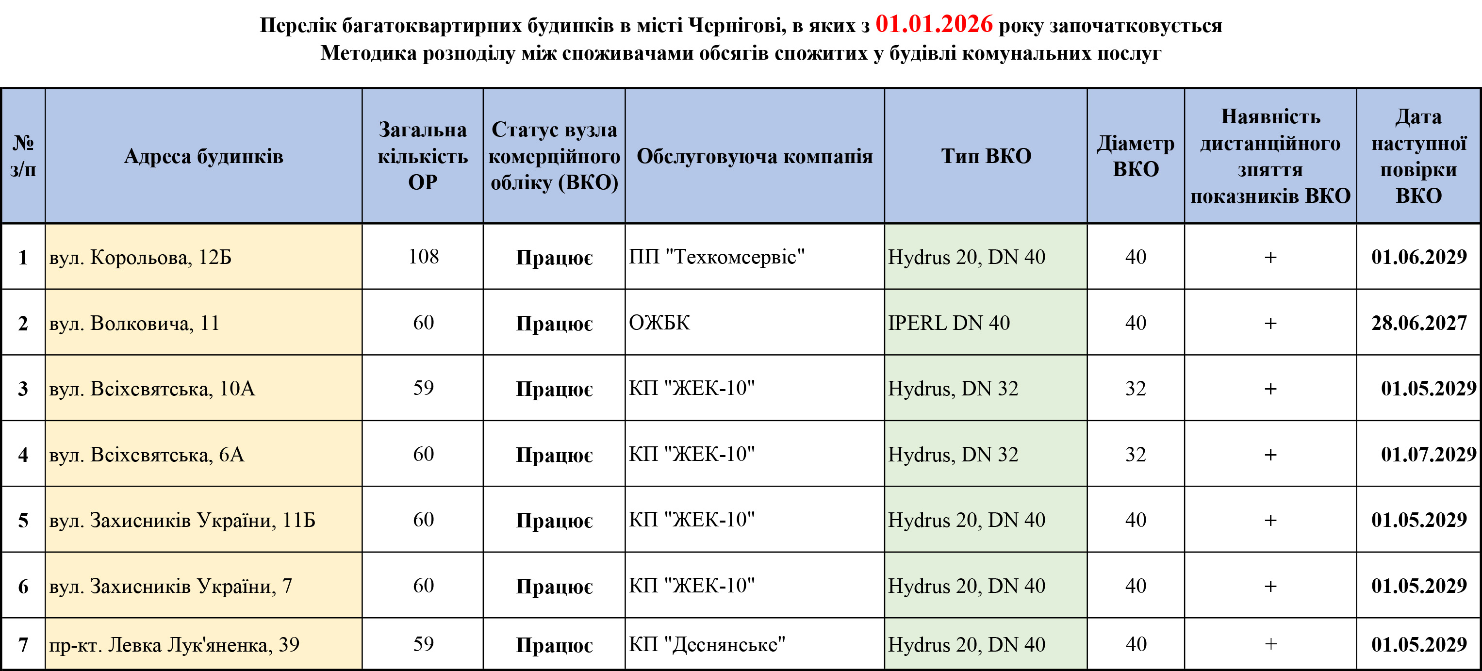 Починаючи з 01.01.2026 за приладами комерційного обліку води розраховуватимуть ще 7 житлових будинків міста Чернігова.