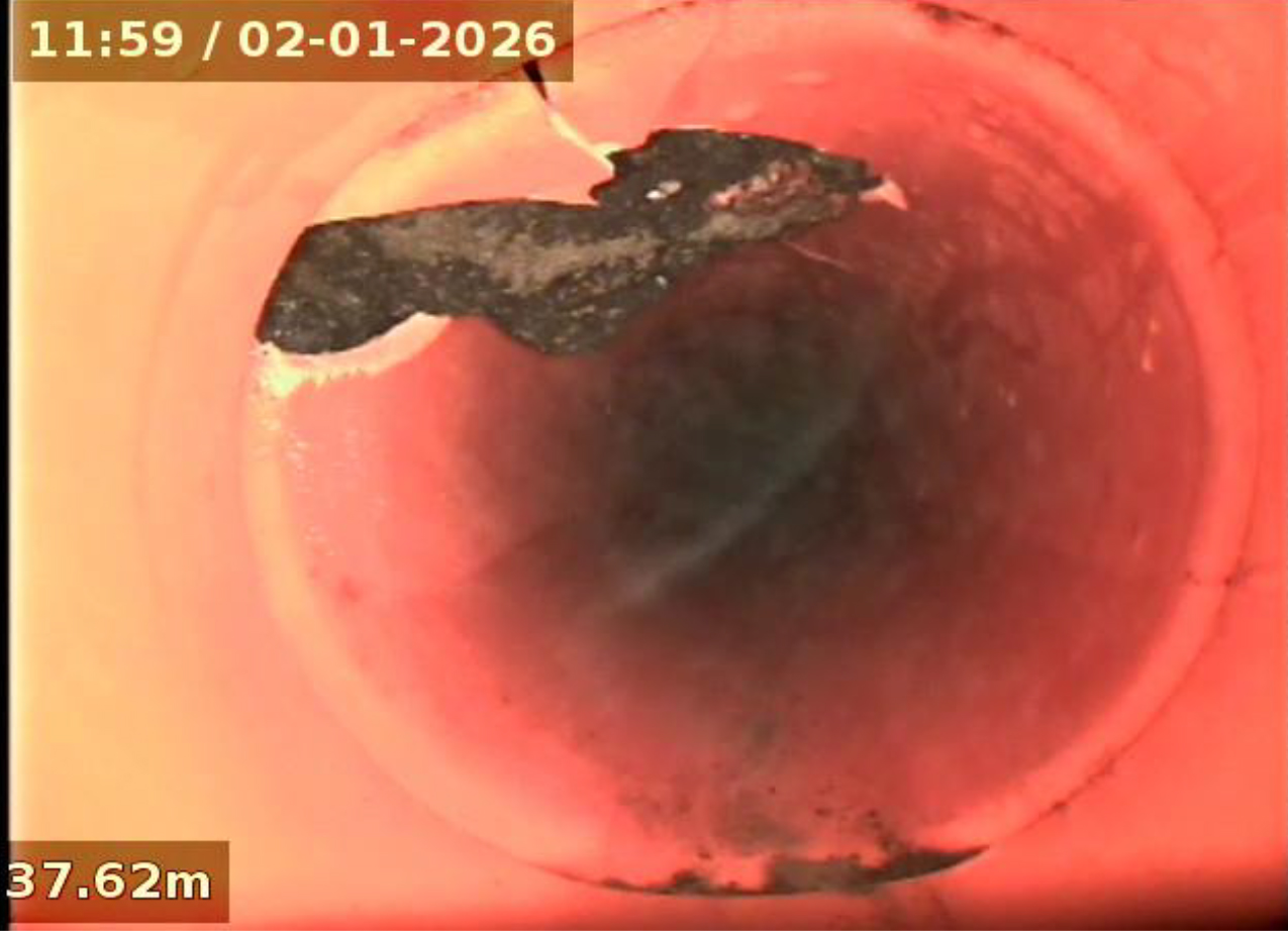 Що зробив підрядник: засипав траншею землею прямо з ковша екскаватора разом із залишками зруйнованого асфальту. На відеоінспекції зафіксовано наскрізний пролом у стінці труби — туди встромився великий шматок асфальту.